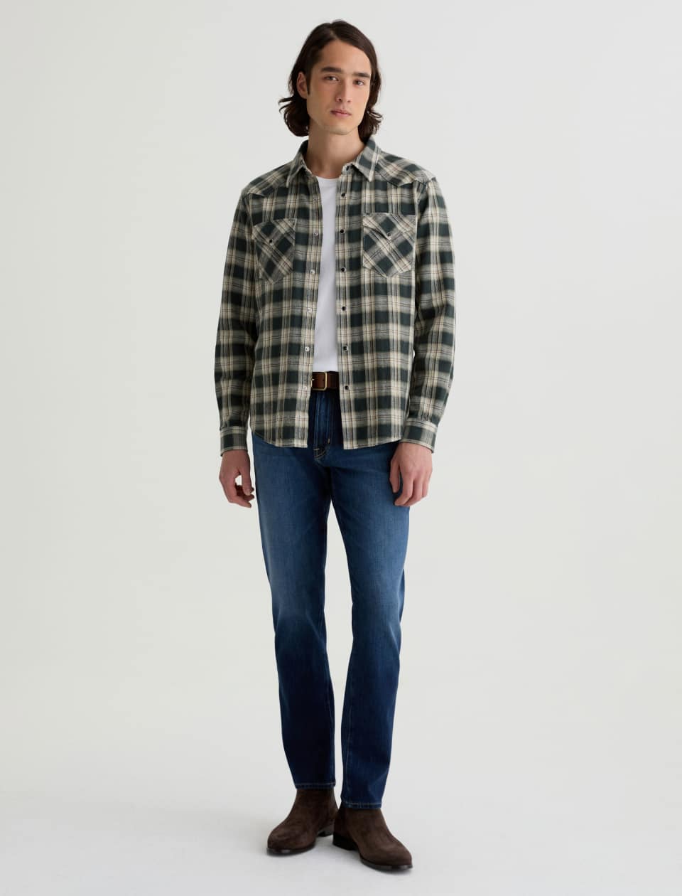 The Tellis is a men’s modern slim pant with a mid-rise silhouette. Crafted from 11.4 oz. Movement Stretch Denim, it offers flexibility and comfort with a streamlined, everyday fit.