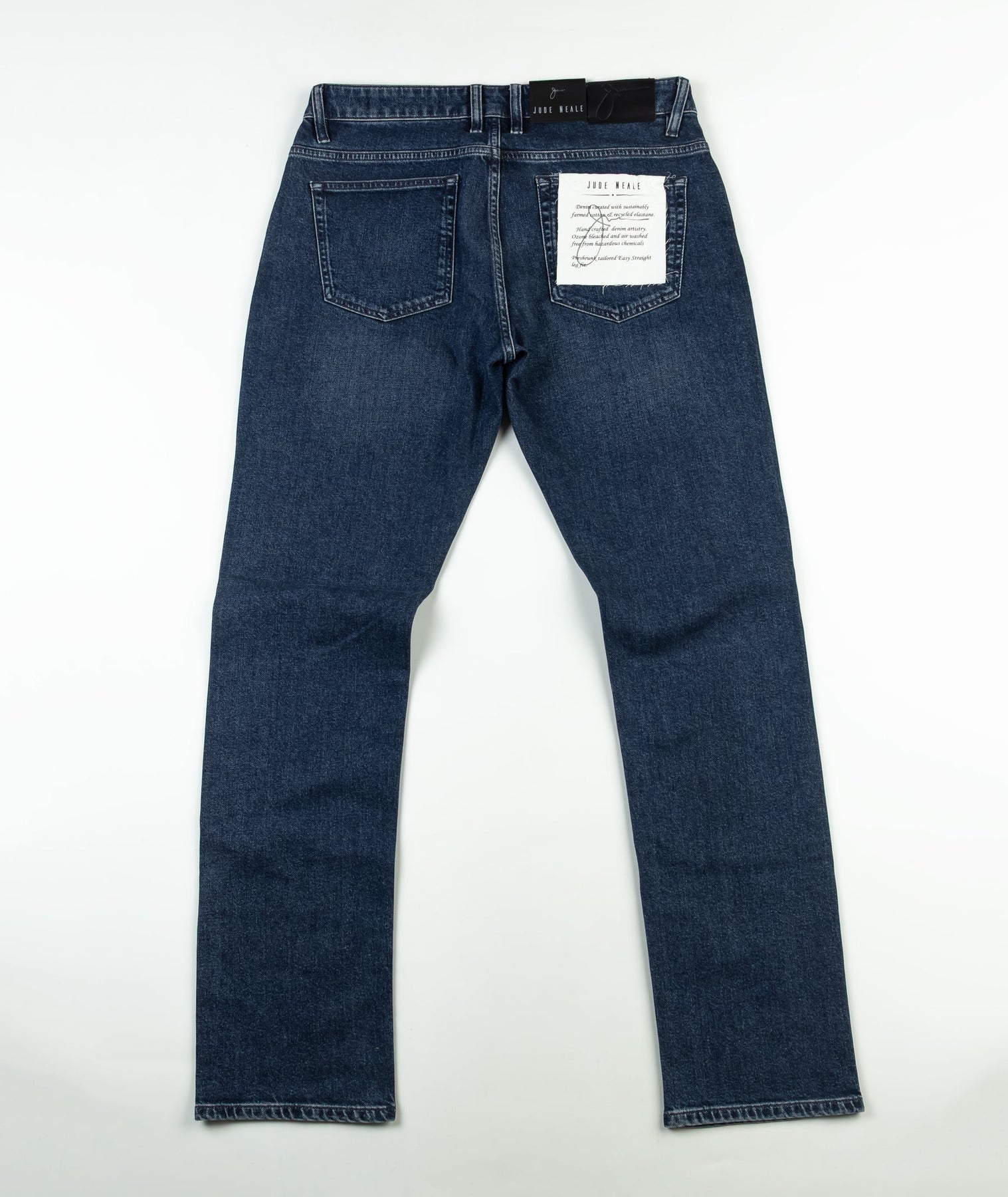 The wash is achieved using next-generation low-impact finishing techniques that rely on air, laser precision, and ozone oxidation rather than water-heavy or chemical-intensive methods. This approach dramatically reduces water usage and avoids aggressive bleaching agents, while producing a more authentic vintage tone and softer handle. At Jude Neale, skilled artisans are encouraged to express their craft using modern tools and precise finishing methods.
