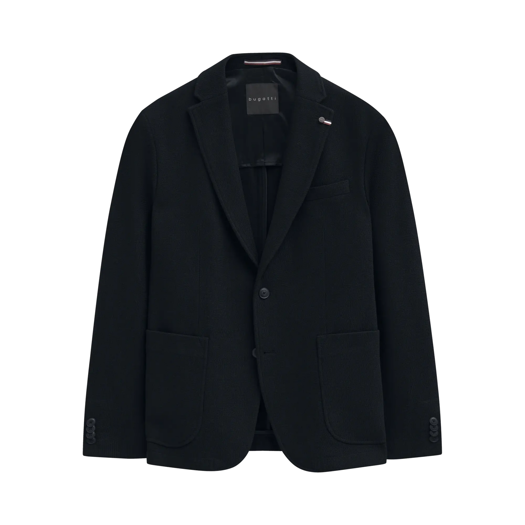 This bugatti jacket brings timeless elegance and modern comfort to your wardrobe. The modern fit creates a slim, masculine silhouette that's equally suited to business looks and smart casual outfits. The classic lapel collar underscores its stylish character, while the high-quality stretch lining offers noticeably greater freedom of movement – perfect for long workdays or events where you want to move freely. The button placket on the front is discreet yet elegantly crafted. Practical details such as the patch pockets, breast pocket, and several inside pockets offer space for your smartphone, cards, or smaller accessories. The easy-care blend of polyester and cotton impresses with its pleasant feel, shape retention, and a well-groomed appearance even after frequent wear. You can combine this jacket in a variety of ways – with a shirt and chinos for the office, with jeans for a relaxed Casual Friday, or with suit trousers for special occasions. If you value quality, comfort, and classic design, this bugatti jacket is exactly the right choice for you.