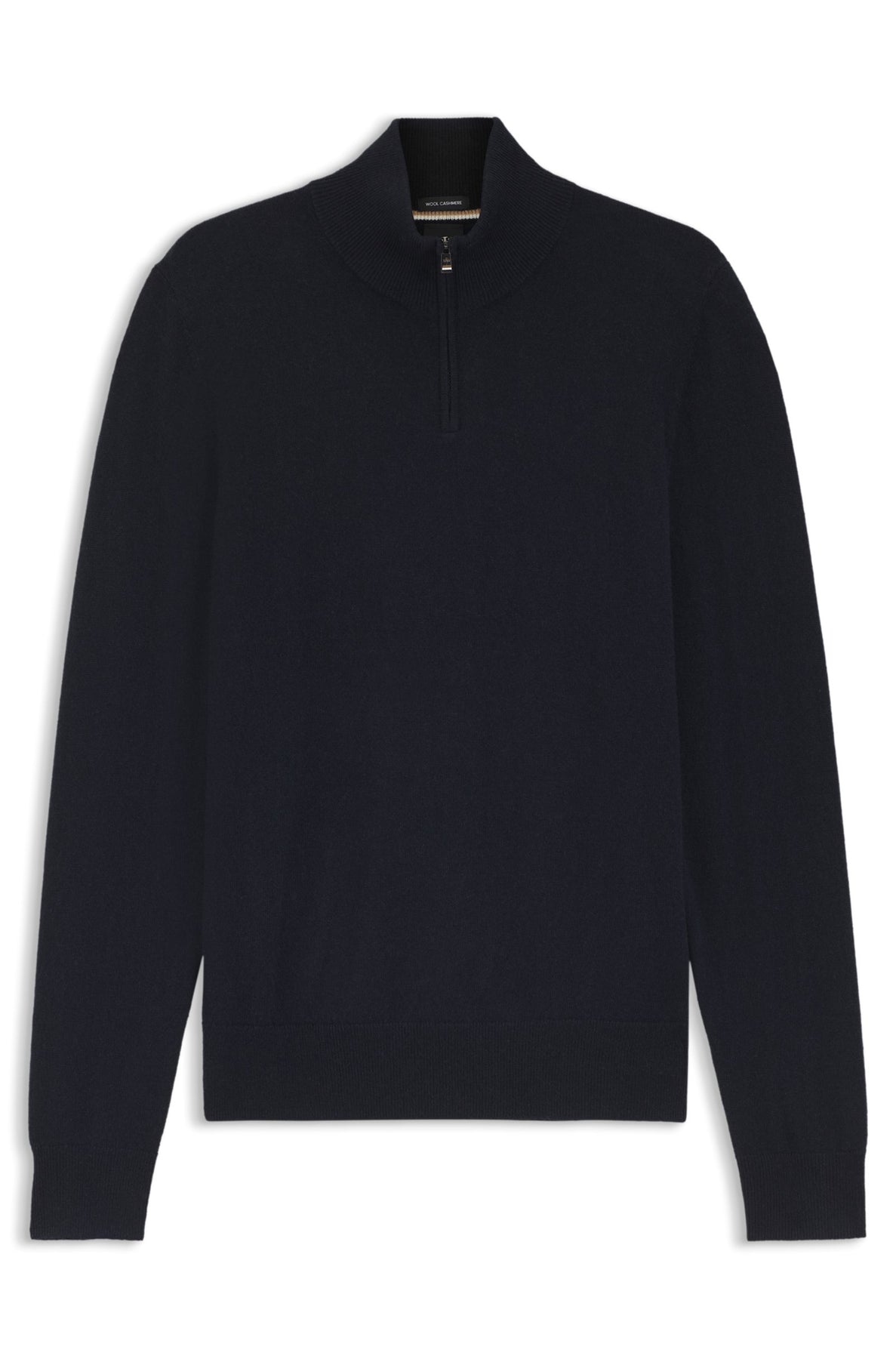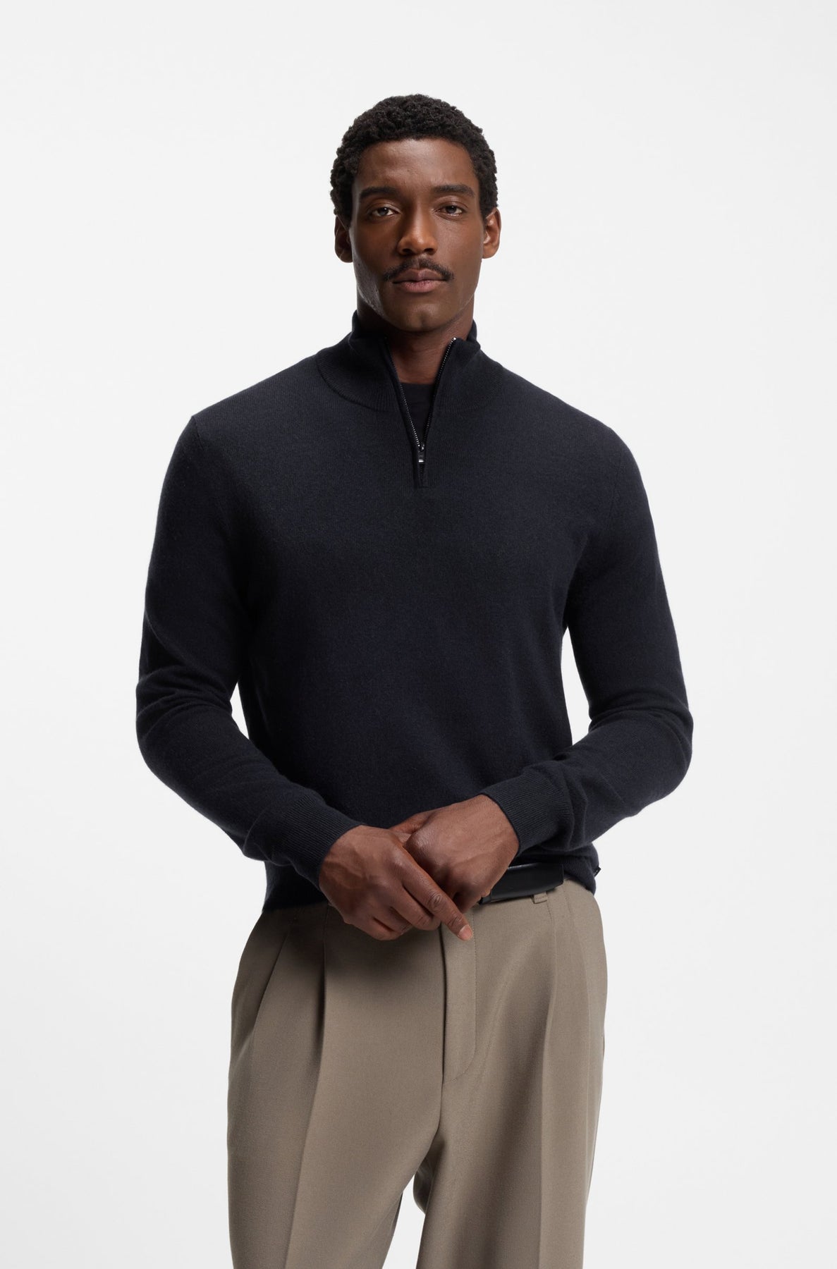 Layer up in luxury with the wool-cashmere blend of this regular-fit BOSS Menswear sweater. Zip collar with contrast inner.