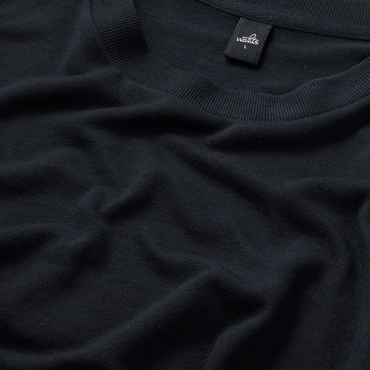 This knitted long-sleeve T-shirt is a versatile essential for the new season. Crafted from a premium blend of soft merino wool and sustainable Lyocell, it offers natural breathability, lasting shape, and exceptional comfort. Designed with a ribbed collar and cuffs for a refined touch, while the straight hem ensures a clean, modern silhouette that pairs effortlessly with both casual and tailored looks.